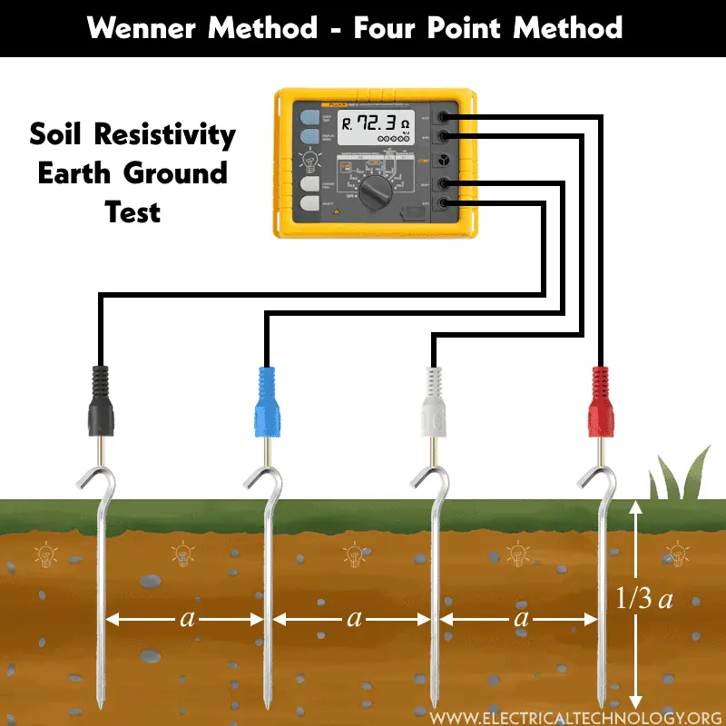Metode paling umum digunakan, dengan jarak antar elektroda sama (a).